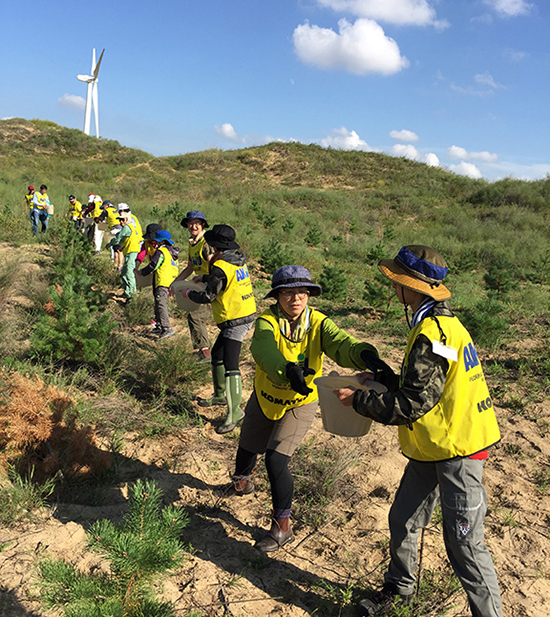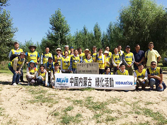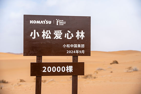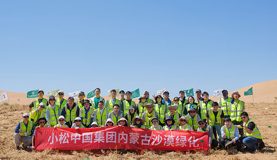 自2005年起,小松開始捐款資助非營利組織在中國內蒙古科爾沁地區開展的沙漠綠化活動。2009年后,小松日本總公司和小松中國集團各公司開始組織員工作為志愿者共同赴當地參加植樹活動。2024年開始,小松中國與中國綠化基金會合作,攜手在內蒙古阿拉善地區支持沙漠綠化項目。經過十幾年的持續努力,已累計植樹超過43萬棵,存活率達71%。
