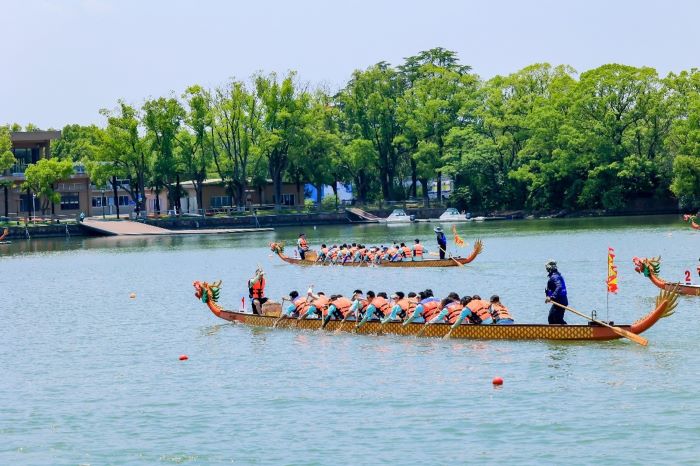 此次比賽,小松工會的“小松龍耀隊”仍舊由上海和常州兩地員工攜手組成,這不僅是一次競技,更是一次跨地區團隊融合的生動實踐。隊員們身著統一隊服,身姿挺拔地登上龍舟。隨著一聲令下,龍舟如蛟龍入海,瞬間劃破平靜的湖面。賽場上,隊員們團結一致,奮勇拼搏,手中船槳起落一致,在水面劃出一道道有力的波紋。鼓手的鼓點強勁有力,節奏分明,與隊員們的劃槳動作一一呼應。面對強勁對手,“小松龍耀隊” 毫不退縮,每一位隊員都拼盡全力,他們奮力揮槳的身影,充分展現出小松人不懼挑戰、奮勇爭先的“匠人”精神。