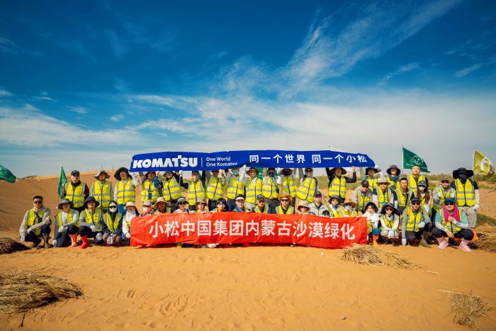 此次活動不僅吸引了小松中國各集團公司志愿者們的積極參與,今年小松(中國)投資有限公司(以下簡稱:小松中國)董事長、總經理兼CEO費春江先生、小松機械制造(山東)有限公司(以下簡稱:小松山東)總經理張新先生與中國綠化基金會繆秘書長也共同參與了沙漠綠化活動,以實際行動彰顯對生態保護事業的堅定支持。