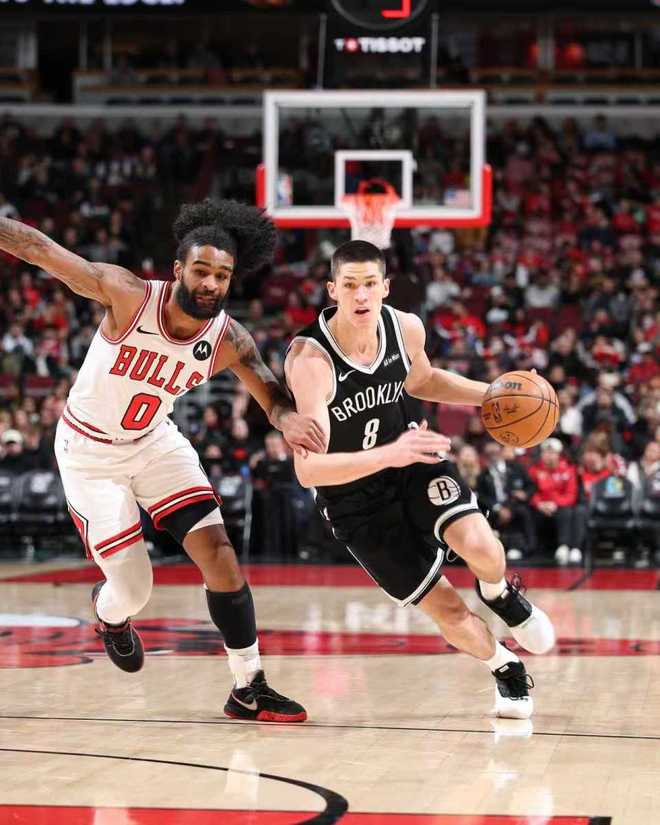 本賽季前兩次交鋒籃網均戰勝公牛,本場籃網缺少鮑威爾、小波特、海史密斯,公牛缺少吉迪、帕威、科林斯。首節公牛早早火力全開,他們打出超高的進攻準星,首節公牛23中16接近7成準星,其中三分7中6超過8成準星,懷特三分3中3得到9分。反觀籃網被限制24中9,其中三分9中3,雙方均沒有球員得分上雙,首節結束公牛39-22領先籃網17分。