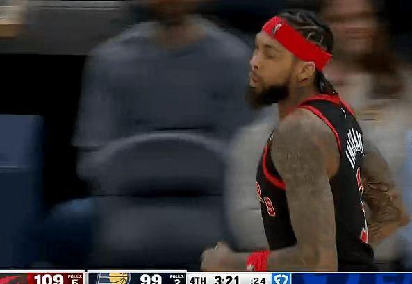 中場休息回來,猛龍連續兩節單節得分不足30分,步行者連續兩節單節得分30分。步行者率先一波13-7攻勢追到差13分,猛龍內外開花很快重新擴大83-64領先優勢,猛龍之后繼續擴大94-74領先優勢。步行者連追4分,猛龍單節27-30被追回3分,三節結束猛龍94-78領先步行者。前三節比賽,巴恩斯20+5+12與英格拉姆22分,引領猛龍5人得分上雙;西亞卡姆4記三分22+7與沃克3記三分11分。